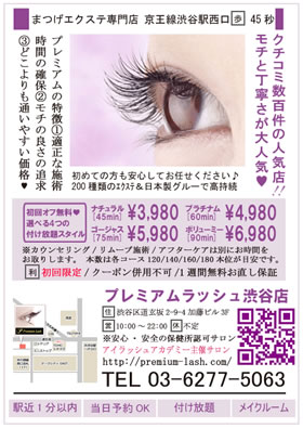 プレミアムラッシュさん、すっごくお薦めです!! 私がマツエクをし始めて間もない頃、クーポン誌に載っているいくつかのお店に行きましたが、なかなか自分好みのデザインに出会えず、毎回なんとなく不満が残るような感じでした。 でも、プレミアムラッシュさんではデザインに関してゆっくり相談に乗ってくれるのはもちろんのこと、マツエクに関しても色々なことを丁寧教えてくださり、私の希望をしっかり聞いた上で時間をかけて対応してくださったので、仕上がりに大満足しました! 以来、プレミアムラッシュさんにしか行かなくなりましたが、毎回毎回大満足です! もう他店に浮気するつもりはありません☆ |