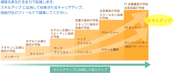 | 待遇 | ・完全週休二日制(休日応援出勤の場合、代休制度も有り) ・功労・業績により賞与年2回支給 ・交通費全額支給 ・指名料全額バック ・皆勤手当(毎月)/大入手当(毎月)/勤続手当/役職手当/社員割引有/まつげ付け放題/ ・労災保険/雇用保険/健康保険/厚生年金加入可 ・外部研修参加補助あり/民間試験受験補助あり/キャリアアップ制度/有給休暇制度(法定通り付与)/独立支援制度(のれんわけ)有 ・国内外への社員旅行 ・制服/道具無償貸与。 ※残業代や休日出勤手当、深夜手当なども労働基準法どおりです。 |